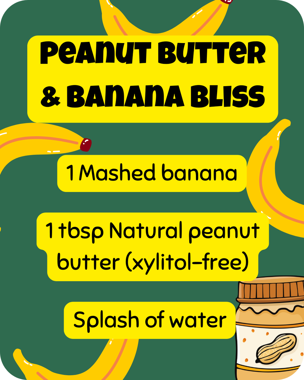 Use dog-safe ingredients like peanut butter, wet food, broth, yoghurt, or mashed pumpkin.